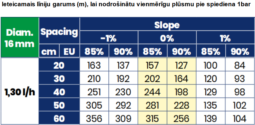 Lašinimo vamzdis iš juodo polietileno su mėlyna juosta, nurodančia lašinimo vamzdžio padėtį viršuje. Montavimas ant žemės paviršiaus arba šiek tiek po žeme. Žemos montavimo ir priežiūros išlaidos. Sumažintas slėgio kritimas ir tolygus tiekimas dideliais atstumais. Aukštas atsparumas užsikimšimui. Integruoti filtrai, kurie neleidžia dalelėms patekti į lašintuvą, mažindami užsikimšimo riziką. Atsparus mechanizuotam montavimui. Aukštas atsparumas UV spinduliams, chemikalams ir rūgštims, naudojamoms žemės ūkyje. Galima surinkti, perdirbti ir naudoti pakartotinai. Garantija nuo 1 iki 3 metų priklausomai nuo storio. Lašinimo juosta atitinka UNI EN ISO 9261 standartus ir yra sertifikuota IIP (Italijos plastikų institutas). Naudojama: šiltnamiuose, atvirame lauke. Gamintojas: Plastic-Puglia (Italija)