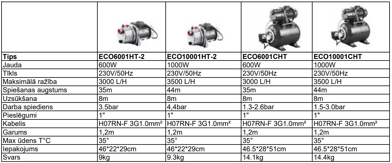 Vandens siurblys ECO10001HT-2, 1.0kW, 44m, 3,5m3